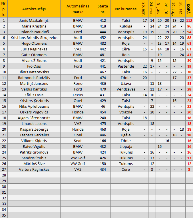 1. 2WDNeviens vēl nav pieteicies. 2. RWDNeviens vēl nav pieteicies. 3. 4WDNeviens vēl nav pieteicies. 4. Junioru klaseNeviens vēl nav pieteicies. 5. 2WD un RWD OPENNeviens vēl nav pieteicies. 6. TestdriveNeviens vēl nav pieteicies.